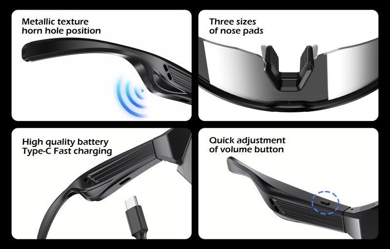With the bluetooth glasses, you can take calls hands-free,listen and speak clearly thanks to the covert omnidirectional microphone built into the bezel.